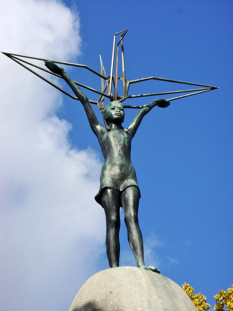 Sadako mouru le 25 octobre 1955 à l’age de 12 ans. Elle aura fabriqué au total 644 grues qu’elle avait confectionné avec le papier qu’elle trouvait. Son histoire eu un profond impact sur ses amis et sa classe qui décidèrent alors de terminer les 1000 grues qu’elle avait commencé et continuèrent cette activité afin de collecter des fonds pour ériger un monument en l’honneur de Sadako et des enfants frappés par la bombe. Aujourd’hui, un monument des enfants pour la paix a été érigé à Hiroshima, et chaque année, il est orné de dizaines de milliers de grues en papier. On trouve à la base de cette statue cette inscritpion :